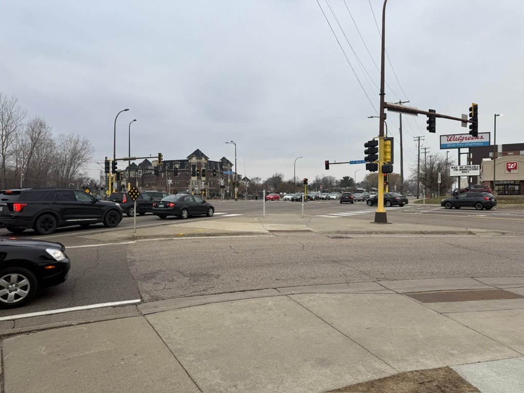Pedestrian refuges: When crossing Hiawatha between Walgreens and Venn Brewing, there is currently a waiting area midway through the intersection for people who cannot make the full crossing in one light cycle. Similar "refuges" will be added on the other side of Hiawatha, and on 46th Street for people crossing from Walgreens to Holiday.