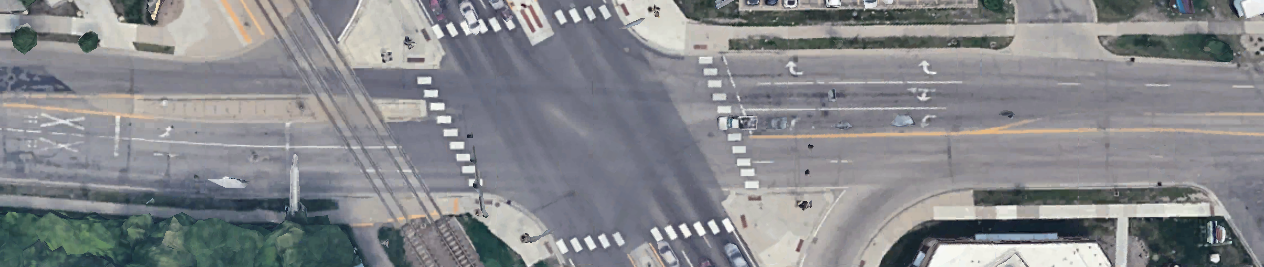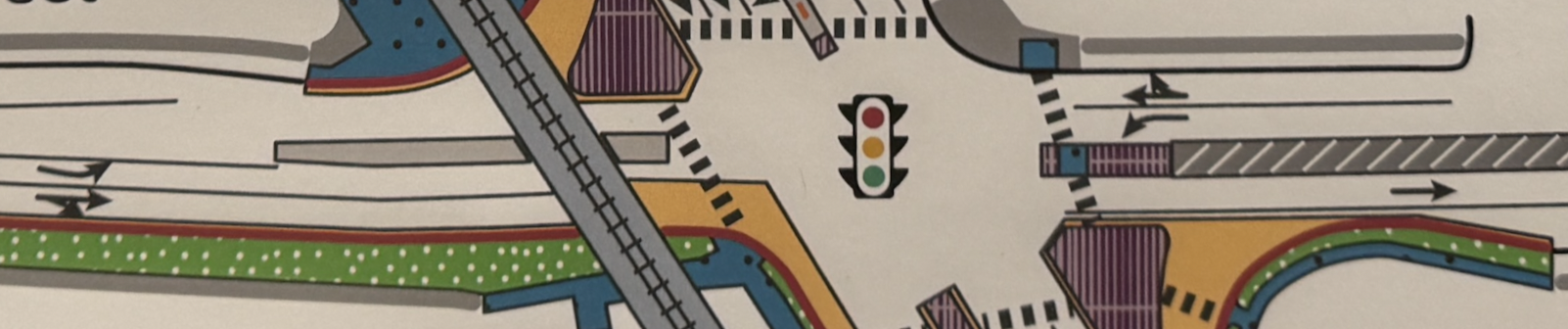 With busy retail at two of its corners, a transit station on a third, and a regional bike connection on the fourth, the intersection sees a steady stream of pedestrian and bike traffic mixing with as many as 30,000 vehicles a day. Throw in long crossing distances, odd angles, train tracks, and growing crime concerns, and the experience of getting from one side to another via any mode can range from irritating to scary.