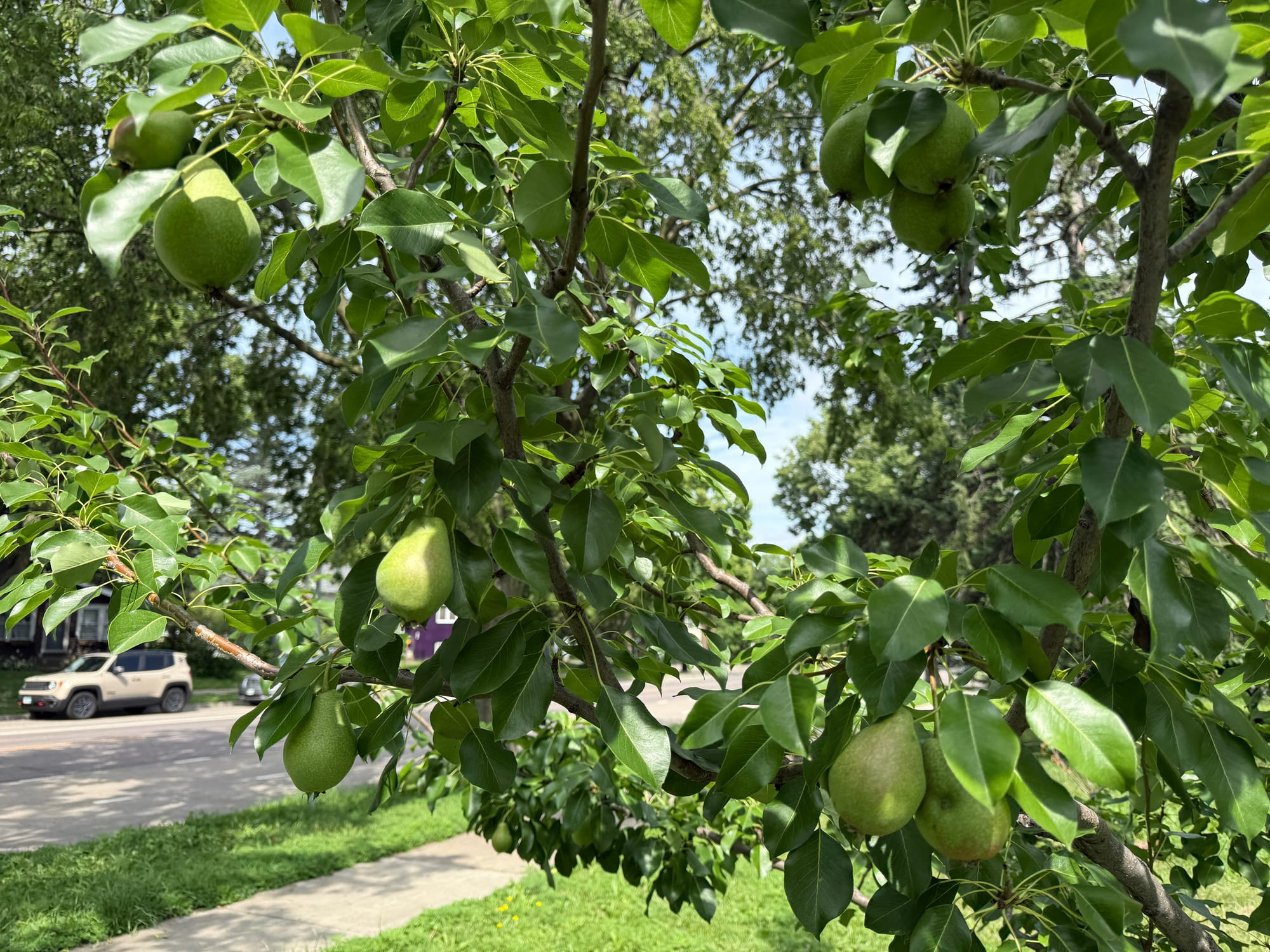 Apricots, plums, peaches, and pears are approaching ripeness at the Adams Grove Community Orchard, a small cluster of fruit trees planted on a grassy triangle lot at 41st and Minnehaha. It's the 10th season of the community-tended orchard in the unassuming "park," where anyone is invited to make a modest harvest.