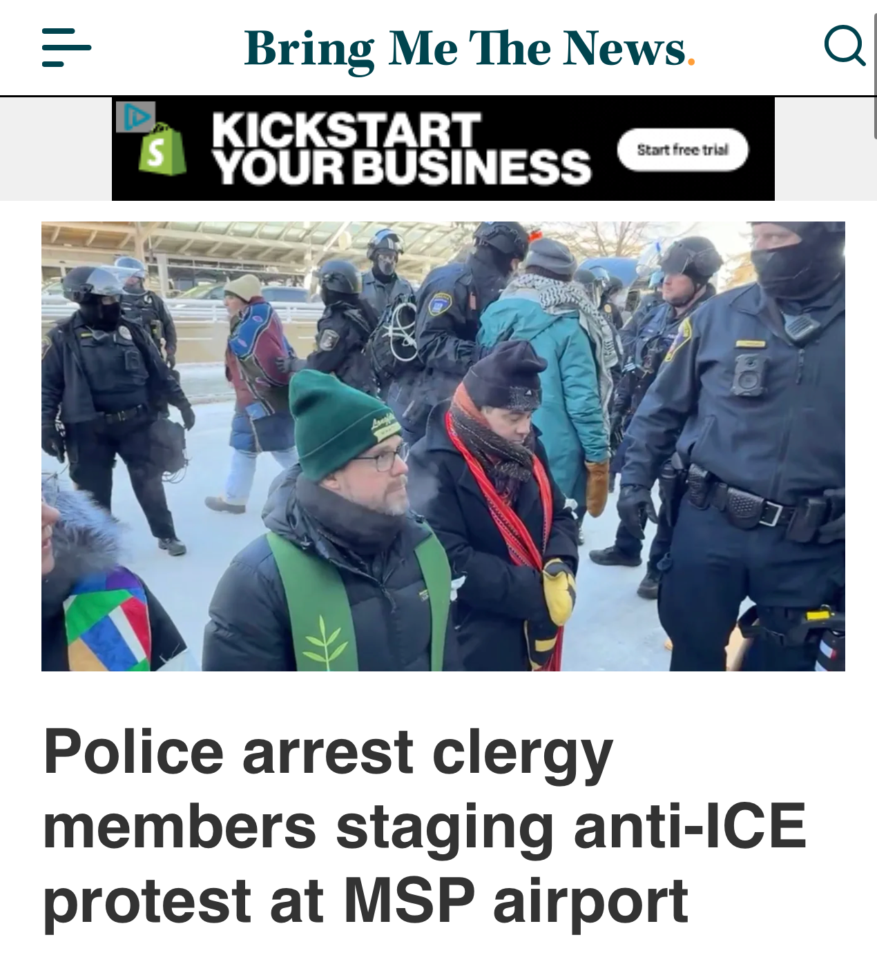 At least two neighborhood pastors — Jay Carlson and Ingrid Rasmussen — were among about 100 clergy members arrested during a protest at the airport on Friday.