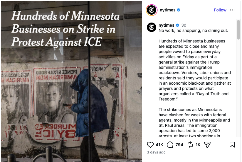 "Business is down everywhere in the city, especially in our neighborhood where ICE and Customs and Border Patrol have been extremely active," he told Tapper. "People are afraid to go shopping, afraid to go to work, afraid to go outside because of the reckless driving of ICE troops speeding through the city. And additionally, you know, we feel like all of us closing down today, shutting down the city today, it's sending a message to the rest of the country, we hope, and we hope that people hear us, and it's a message saying, we hope you'll join us in resisting this authoritarian and totalitarian regime that's being forced upon us."