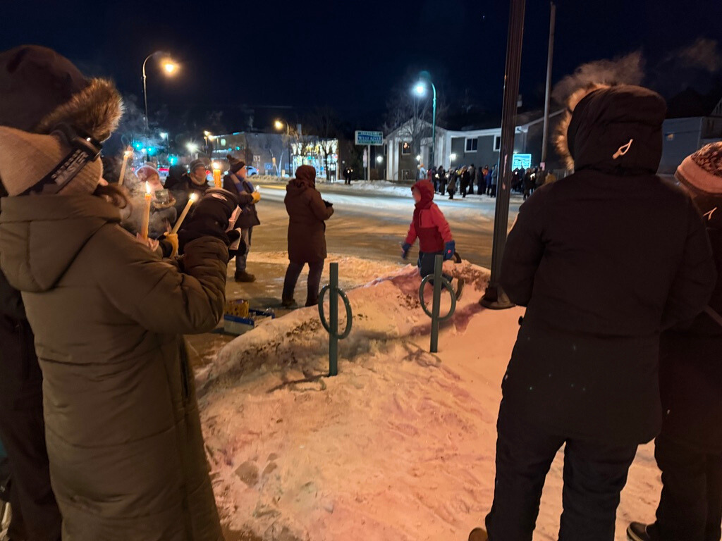 As night fell, impromptu candlelight vigils proliferated throughout the neighborhood. Many migrated to their street's intersection with Lake Street, where groups were visible on all four corners of virtually every intersection. Large groups also gathered at each neighborhood park, including the Adams Triangle, as well as the corners of many interior blocks.