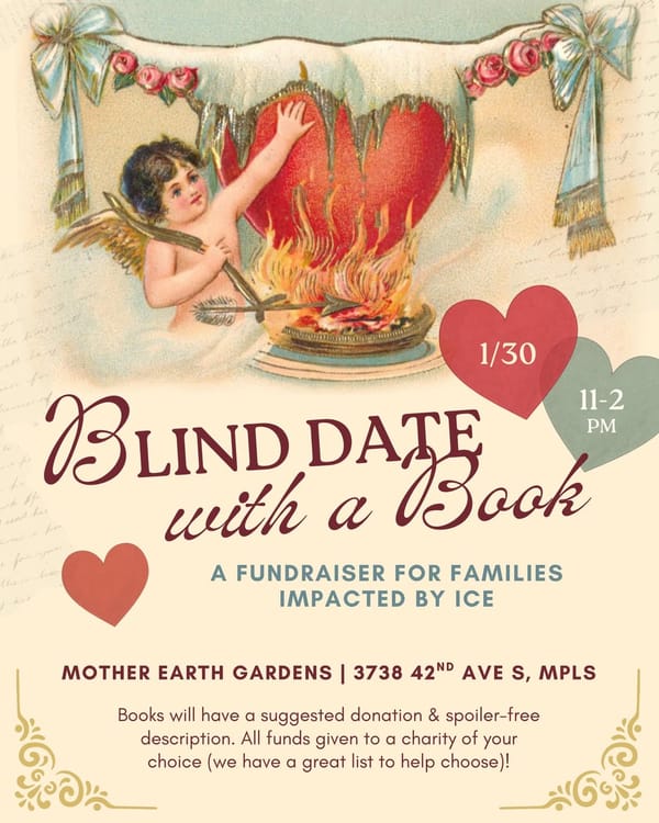 - A group of neighbors is organizing a "Blind Date with a Book" fundraiser at Mother Earth Gardens on Friday from 11-2
