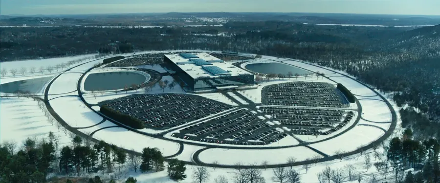 The Apple TV breakout hit show Severance, which streams the hotly anticipated finale of its second season tonight, features a recurring aerial shot of its malevolent company’s headquarters. It’s a boxy, symmetrical building wrapped in continuous mirrored glass and surrounded by an egg-shaped complex of parking lots and landscaping. Like everything else in the show, it's striking, mysterious, and meticulously put together. The New York Times described the complex as "the breakout star of the breakout hit" that's become a tourist destination for fans of the show.